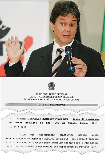 O ex-deputado Roberto Jefferson, presidente do PTB, foi indiciado por crime de formação de quadrilha. Foi dele a responsabilidade pela indicação dos funcionários que arrecadaram propina para o partido