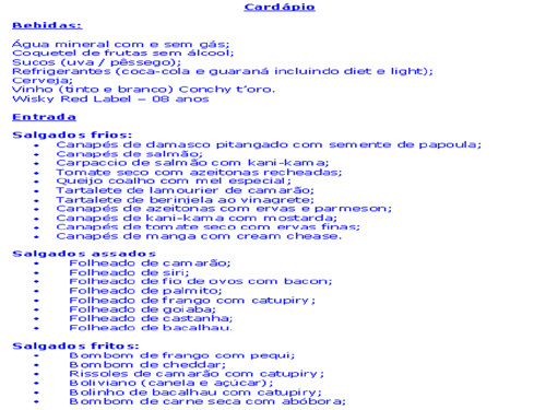 Confira o cardápio que o Sindipol/DF preparou para receber nossos convidados: