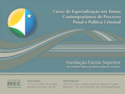 CONVENIADO SINDIPOL/DF – FUNDAÇÃO ESCOLA SUPERIOR DO MPDFT PROMOVE CURSO DE ESPECIALIZAÇÃO EM TEMAS CONTEMPORÂNEOS DE PROCESSO PENAL E POLÍTICA CRIMINAL