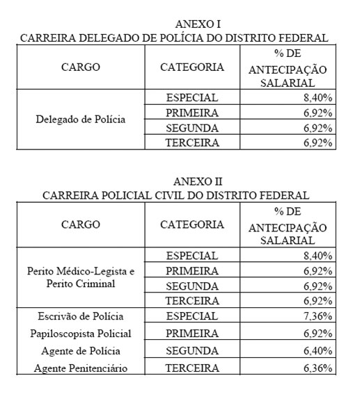 A Medida Provisória que trata do reajuste salarial dos delegados de polícia civil, dos policiais civis, dos policiais e bombeiros militar ainda não foi editada. Porém, um decreto assinado pelo governador do Distrito Federal José Roberto Arruda, no último dia 23, autoriza a antecipação do aumento.