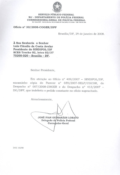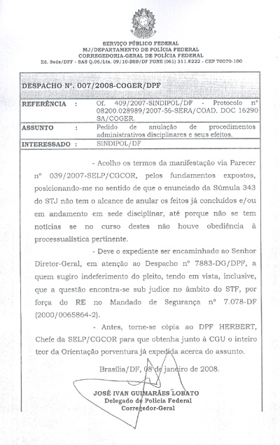 DESPACHO NÚMERO 007/2008-COGER/DPF