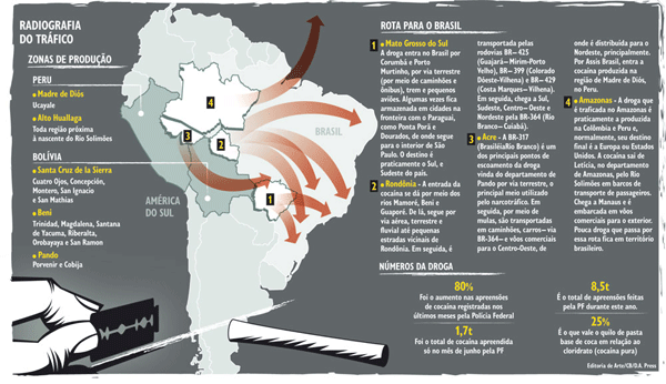 Com a repressão às Forças Armadas Revolucionárias da Colômbia (Farcs), que dominavam os plantios de coca principalmente em Barrancominas, região andina colombiana, o narcotráfico migrou para a Bolívia e o Peru, onde a produção cresceu muito nos últimos anos. Com isso, e pela proximidade com o Brasil, o tráfico se acentuou na fronteira e ganhou as grandes cidades. O Rio de Janeiro, onde o crack tinha consumo baixo, passou a ser um mercado próspero. Um exemplo disso foi visto ontem, quando a PF descobriu um laboratório caseiro de refino de cocaína