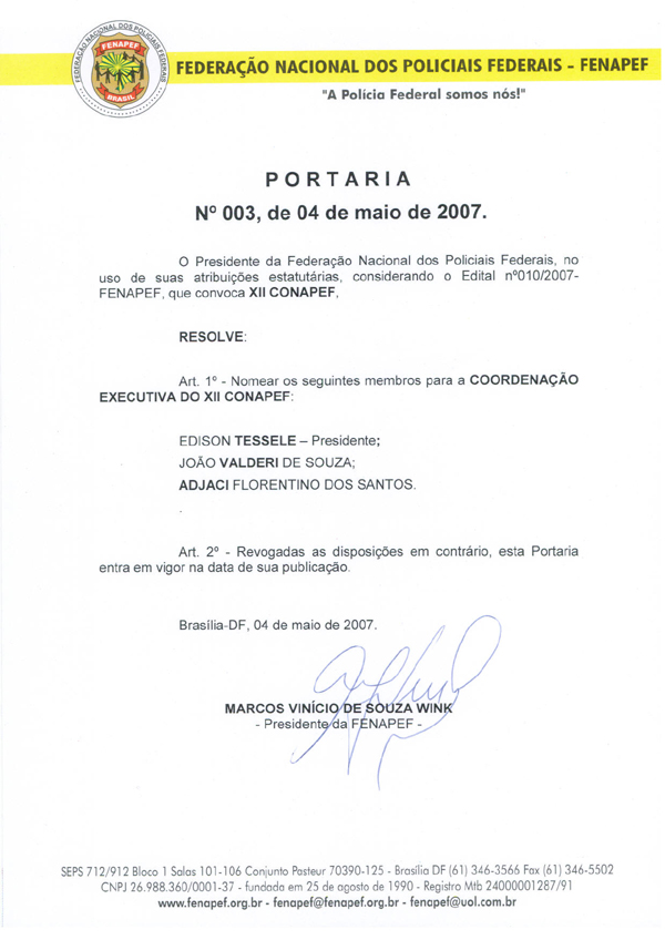 Clique aqui e veja o ofício 010/2007 da Fenapef.