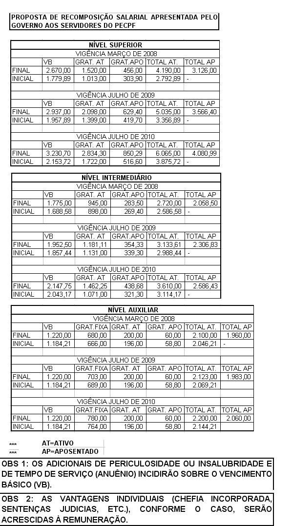 Segundo informações da Presidente do SINPECPF, Hélia Cassemiro, o encerramento da greve foi condição imposta pelo MPOG para a retomada das negociações que prevê reajuste salarial da categoria e a reestruturação do cargo. Hélia também noticiou que houve a apresentação de uma proposta de reajuste por parte do governo, mas salientou que a categoria irá estudar os índices da tabela e tentar melhora-los.