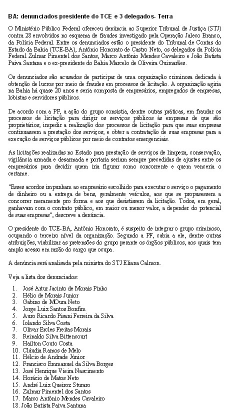 PROCURADORIA ACUSA 28 PESSOAS POR FRAUDE EM LICITAÇÕES NA BA – Folha SP