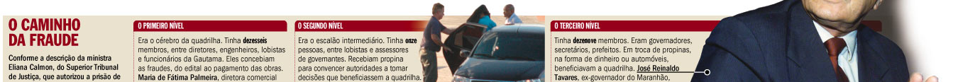 A Operação Navalha, que implodiu uma quadrilha que assaltava verbas públicas, pode ser mais explosiva pelo que ainda esconde do que pelo que já mostrou. No plano visível, a batida policial colocou 46 pessoas na cadeia, entre elas o ex-governador do Maranhão José Reinaldo Tavares, acusado de receber um carro de mais de 100.000 reais de propina, e Ivo Almeida Costa, assessor do ministro de Minas e Energia, Silas Rondeau, suspeito de ter fraudado uma licitação. A operação também revelou que a quadrilha tinha ramificações em quatro ministérios e um órgão federal, atuava em seis estados e várias cidades, incluindo Camaçari, na Bahia, e Sinop, em Mato Grosso, cujos prefeitos também foram presos. Estima-se que a quadrilha, ao fraudar licitações de obras públicas e distribuir propina a servidores e autoridades para azeitar seus negócios ilícitos, tenha desviado pelo menos 100.milhões de reais dos cofres públicos num único ano, mas a quantia final deve ser muito maior do que isso. O líder do esquema, apontado como “chefe dos chefes” no despacho do Superior Tribunal de Justiça que autorizou as prisões, era o empreiteiro Zuleido Soares Veras, 62 anos, dono da empresa Gautama, com sede em Salvador e tentáculos por todo o Nordeste. Grave esse nome: Zuleido Veras.