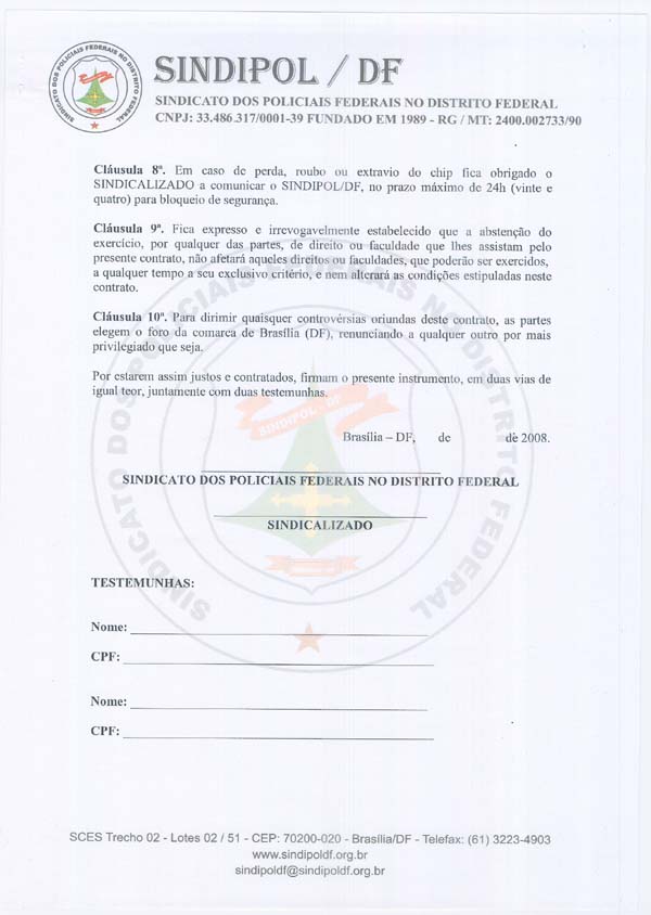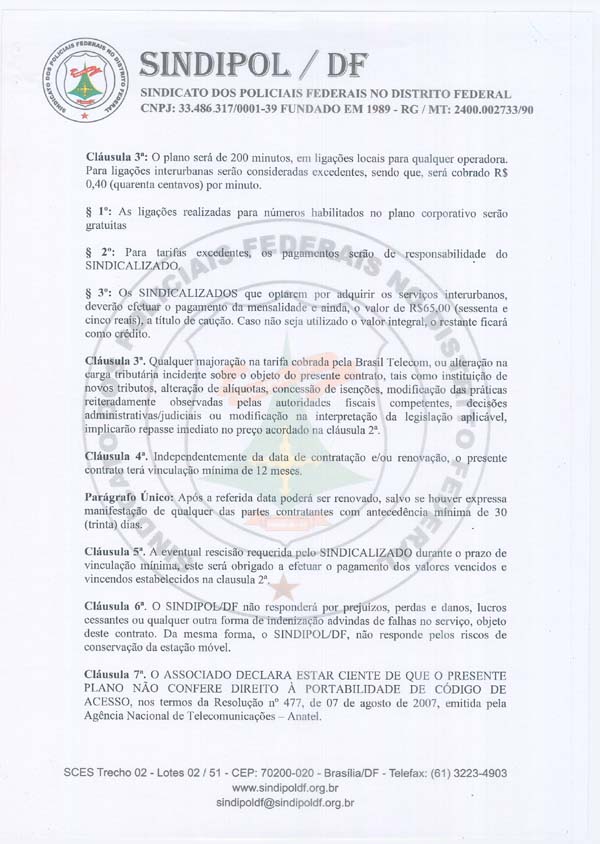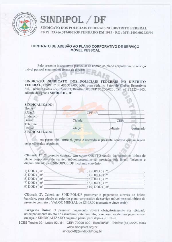 O Sindipol/DF firmou contrato com a operadora de telefonia móvel da Brasil Telecom para oferecer aos nossos sindicalizados vantagens especiais no plano corporativo. Quem tiver interesse em aderir, basta vir ao sindicato e procurar Marcelle.