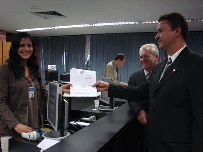 Presidente do Sindipol/DF,Luís Cláudio junto ao protocolo para entrega do Pedido de Liminar