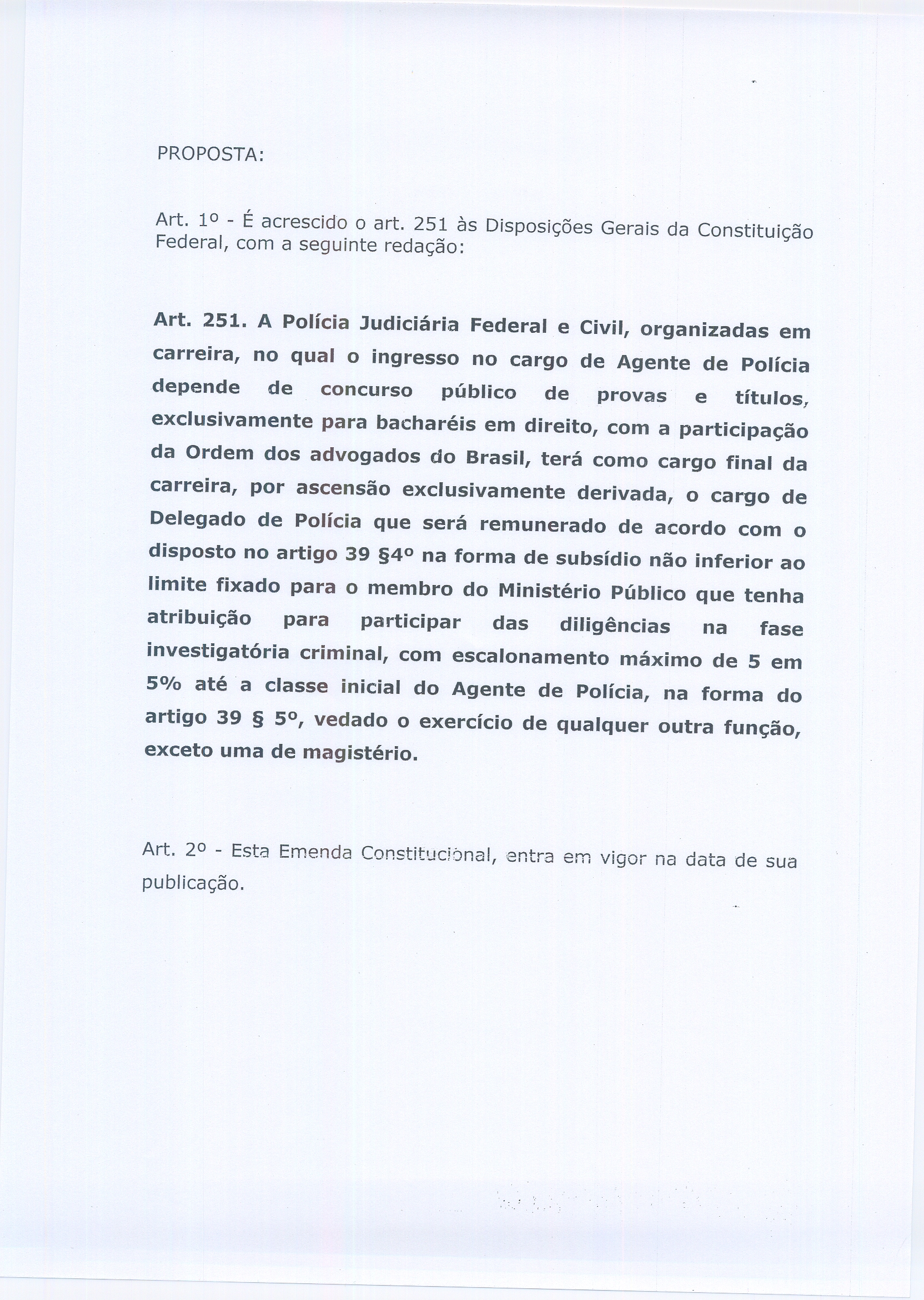 O Sindicato dos Policiais Civis de Brasília e do Rio Grande do Sul também sugerem modificações na PEC, através de novas teses. Porém, naquele caso existe a manutenção da Carreira de Delegado.