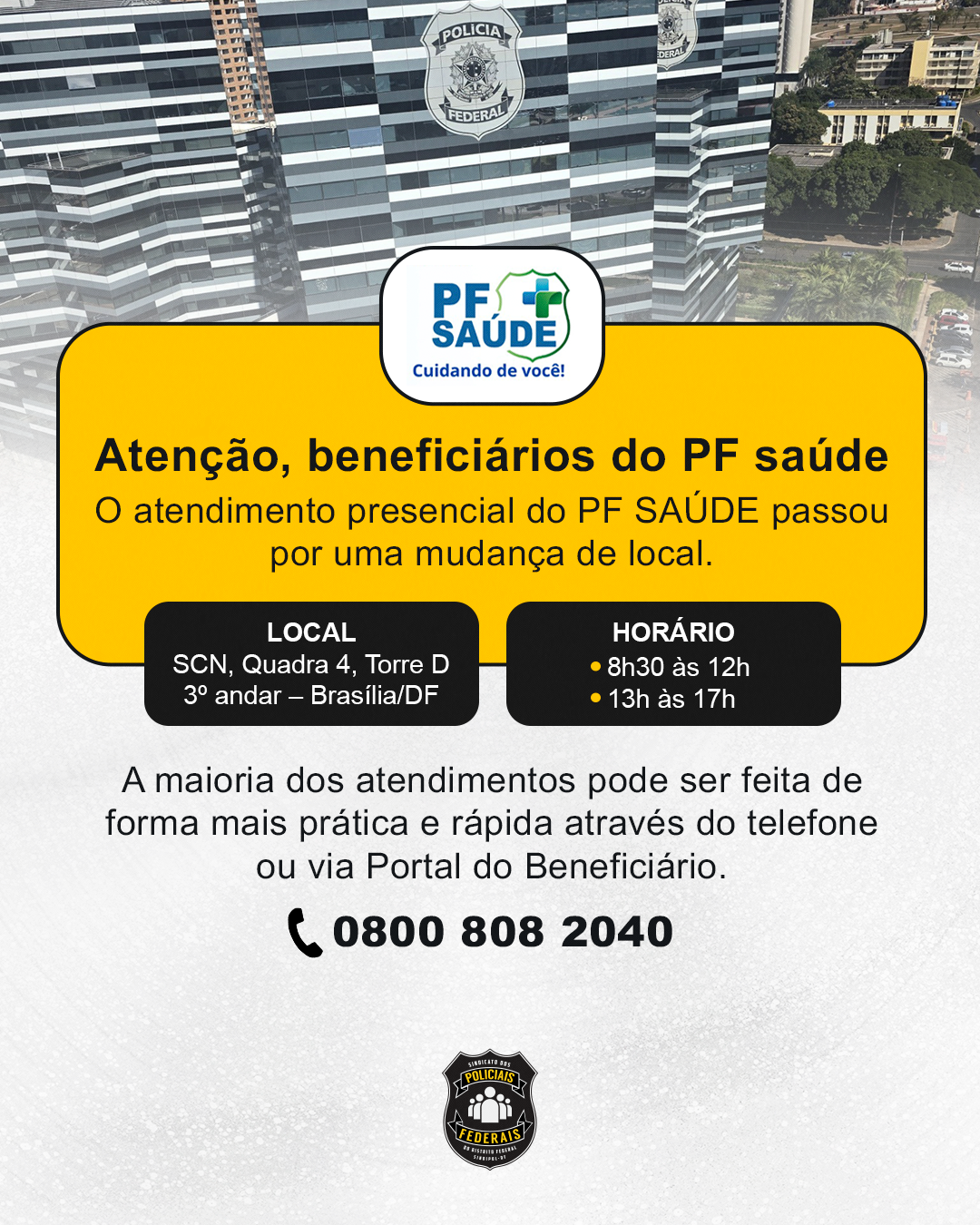 O atendimento presencial do PF Saúde passou por uma mudança de local em Brasília.