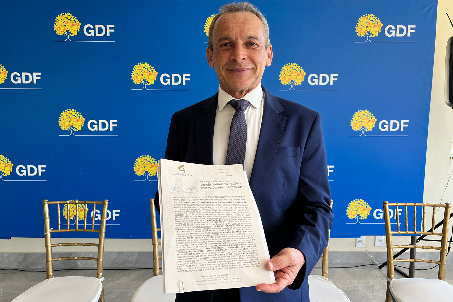 Na manhã desta terça-feira, 26 de agosto de 2025, o Sindicato dos Policiais Federais no Distrito Federal (SINDIPOL/DF) sediou a solenidade de entrega e assinatura da escritura do terreno que abriga a sede do sindicato e o Clube dos Policiais Federais. O ato contou com a presença do governador do Distrito Federal, Ibaneis Rocha, que oficializou a assinatura junto à Companhia Imobiliária de Brasília (Terracap).