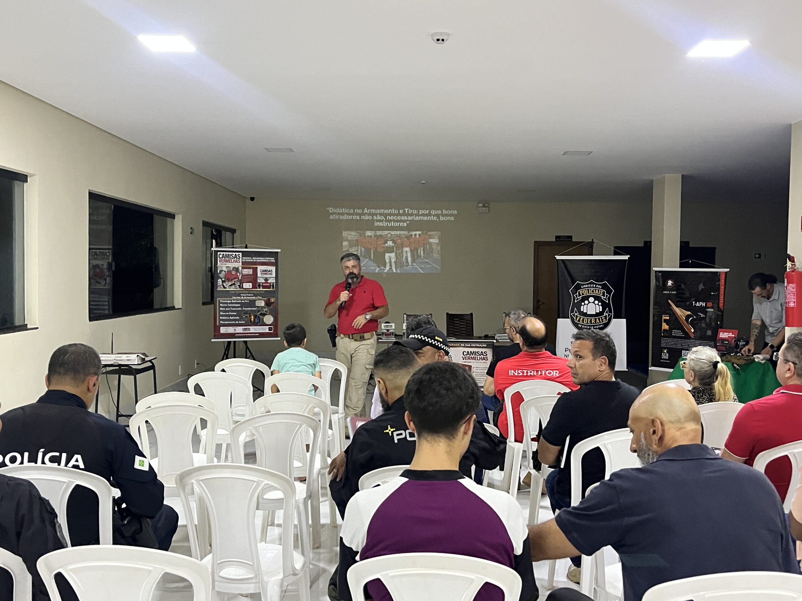 O evento reuniu colegas das polícias Federal, Penal e Militar, filiados ao sindicato, alunos do estande de tiro, diretores, amigos e convidados para o encontro técnico “Camisas Vermelhas: Didática, Segurança e Método no Ensino do Tiro”, consolidando um momento de troca qualificada de conhecimento e fortalecimento institucional.