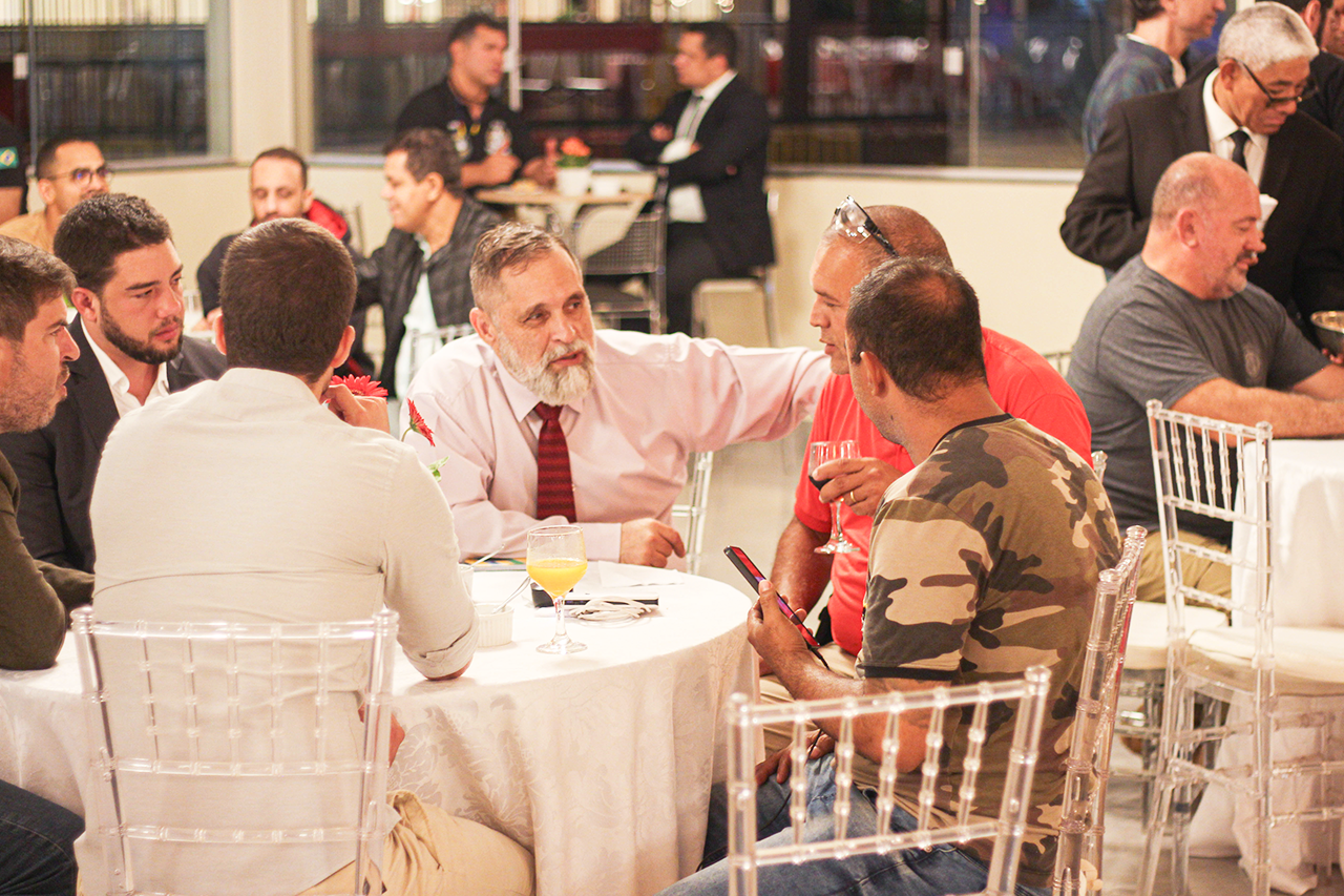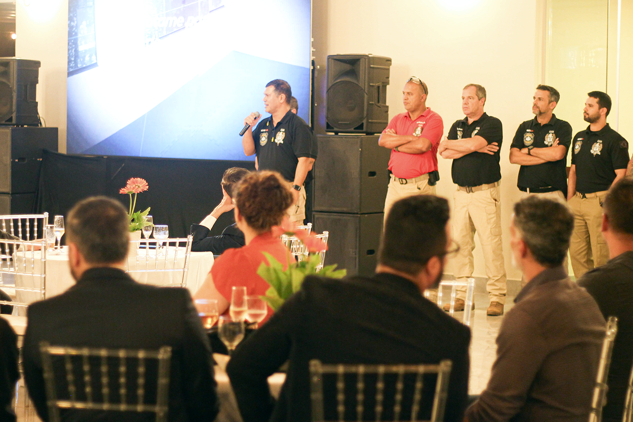 Em seguida foi servido um coquetel no salão de festas do SINDIPOL/DF. Oportunidade em que o jornalista e âncora da TV Record Giulianno Cartaxo, atuou como mestre de cerimônia, numa apresentação técnica do estande de tiro indoor, destacando as principais características e estrutura.