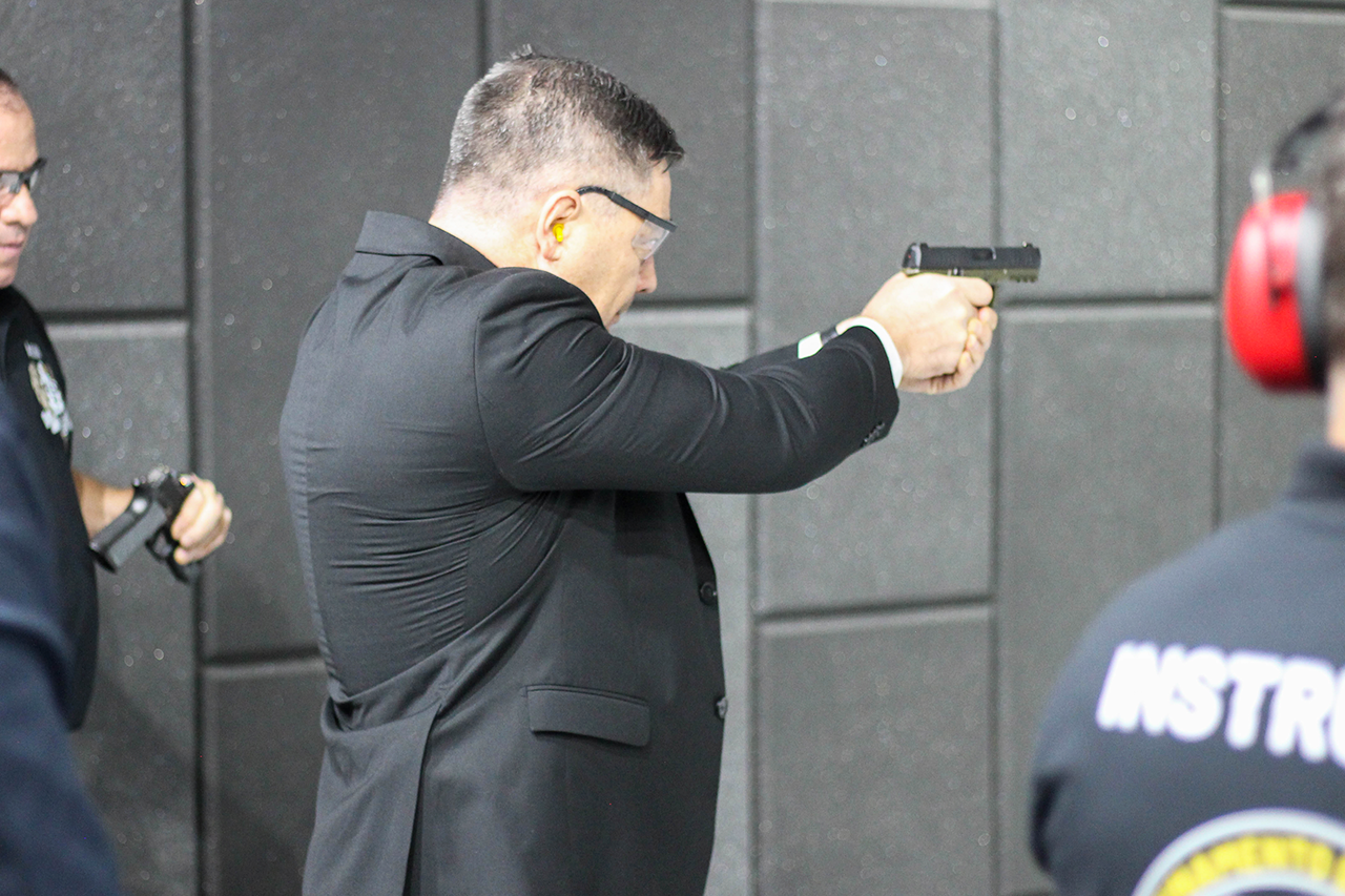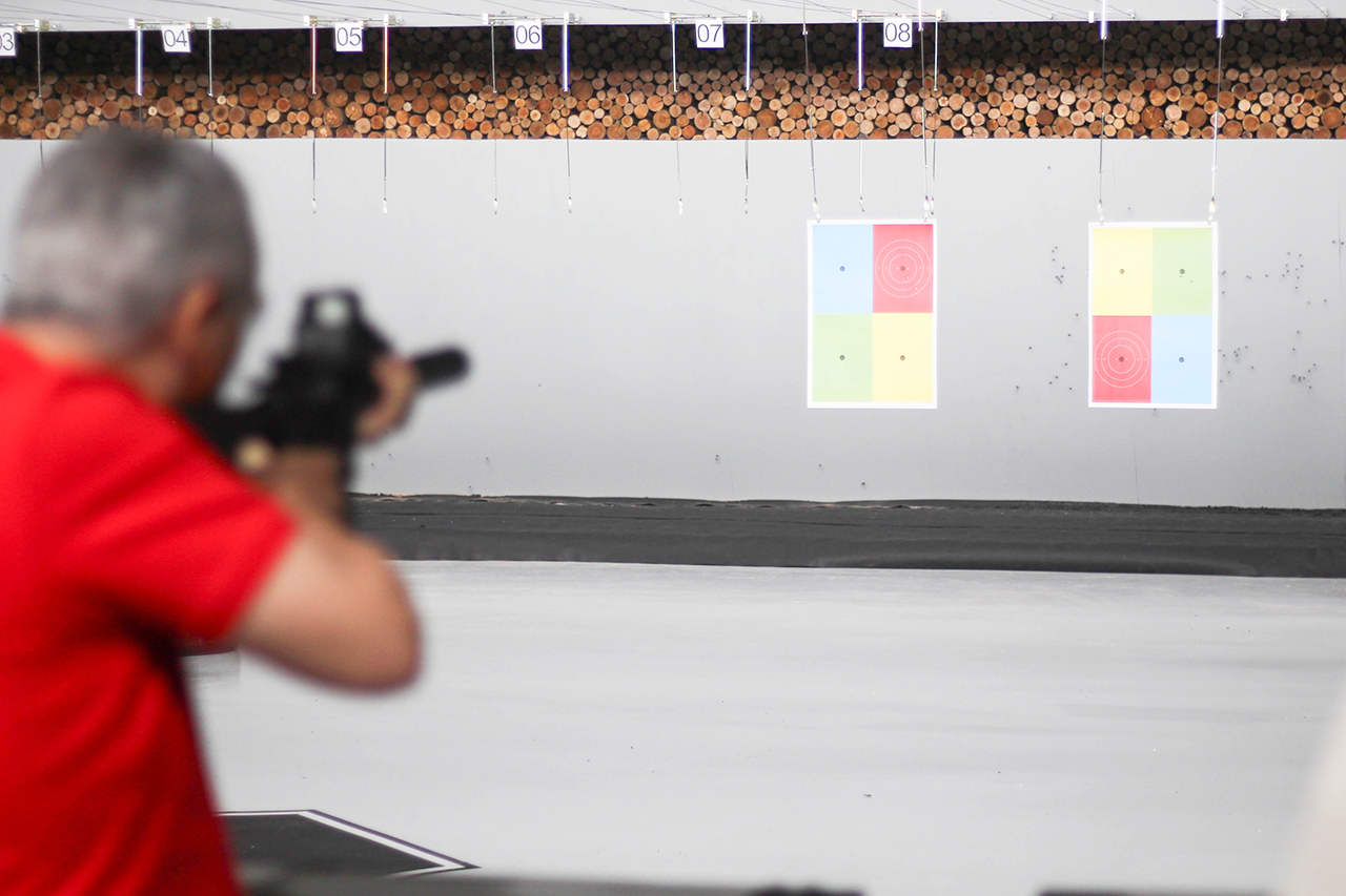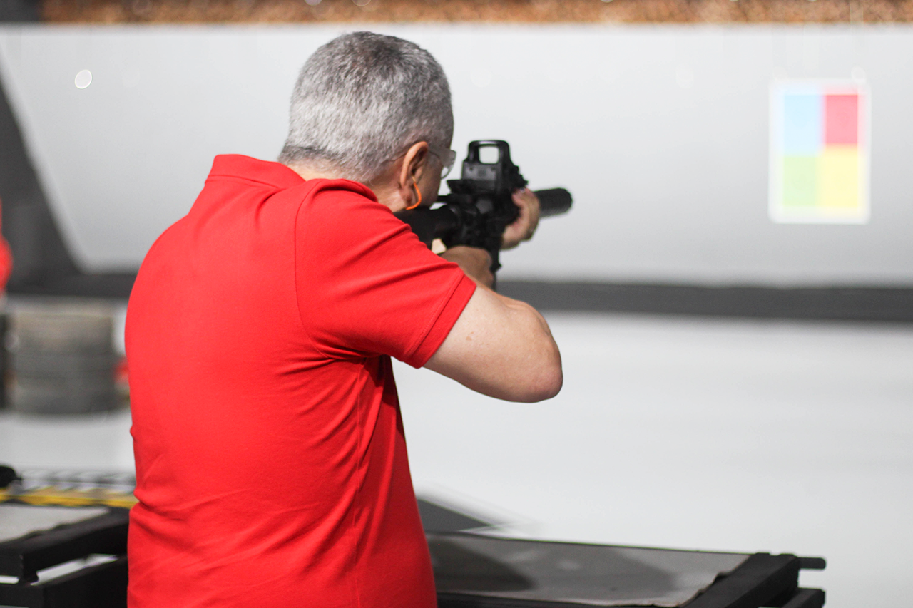Durante o evento, os convidados puderam conhecer de perto as instalações e vivenciar experiências práticas oferecidas pelos parceiros no simulador e no estande de tiro.